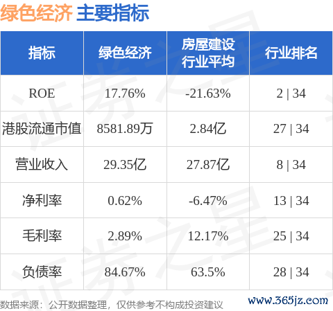 绿色经济港股市值8581.89万港元,在房屋建设行业中排名第27。主要指标见下表: